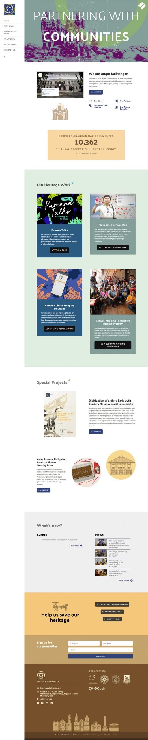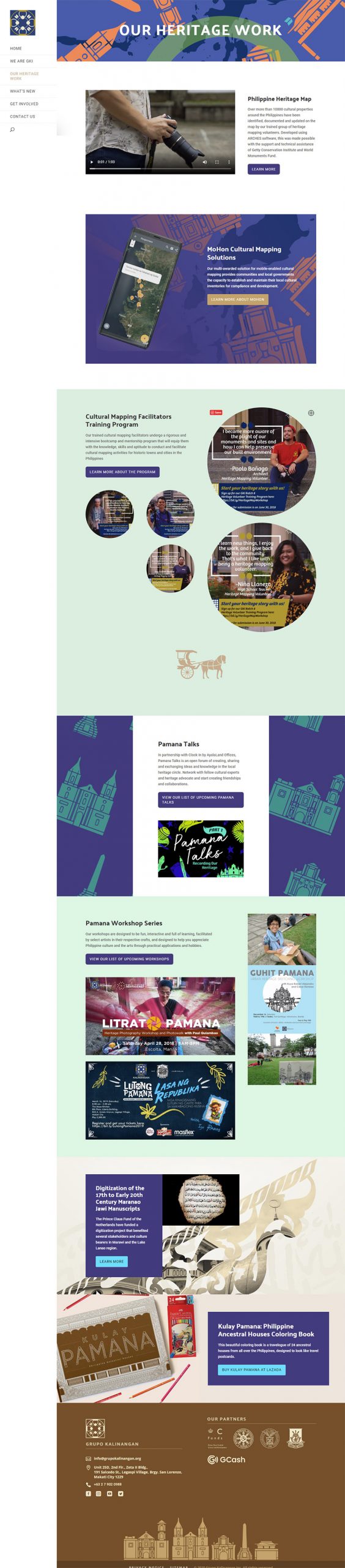 Project: grupokalinangan.org Client: Grupo Kalinangan Year: 2020 CMS: WordPress Services: Web development (HTML, CSS, Javascript)Custom vector elements and graphic design CMS training